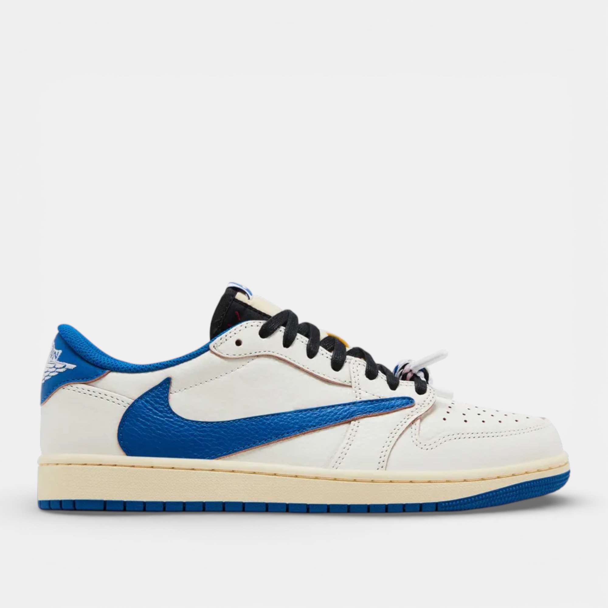 La Jordan 1 Low Fragment x Travis Scott Sail Military Blue s’impose comme une pièce marquante de la collaboration, aussi pertinente pour les collectionneurs que pour ceux qui recherchent une Jordan 1 au design maîtrisé et intemporel.