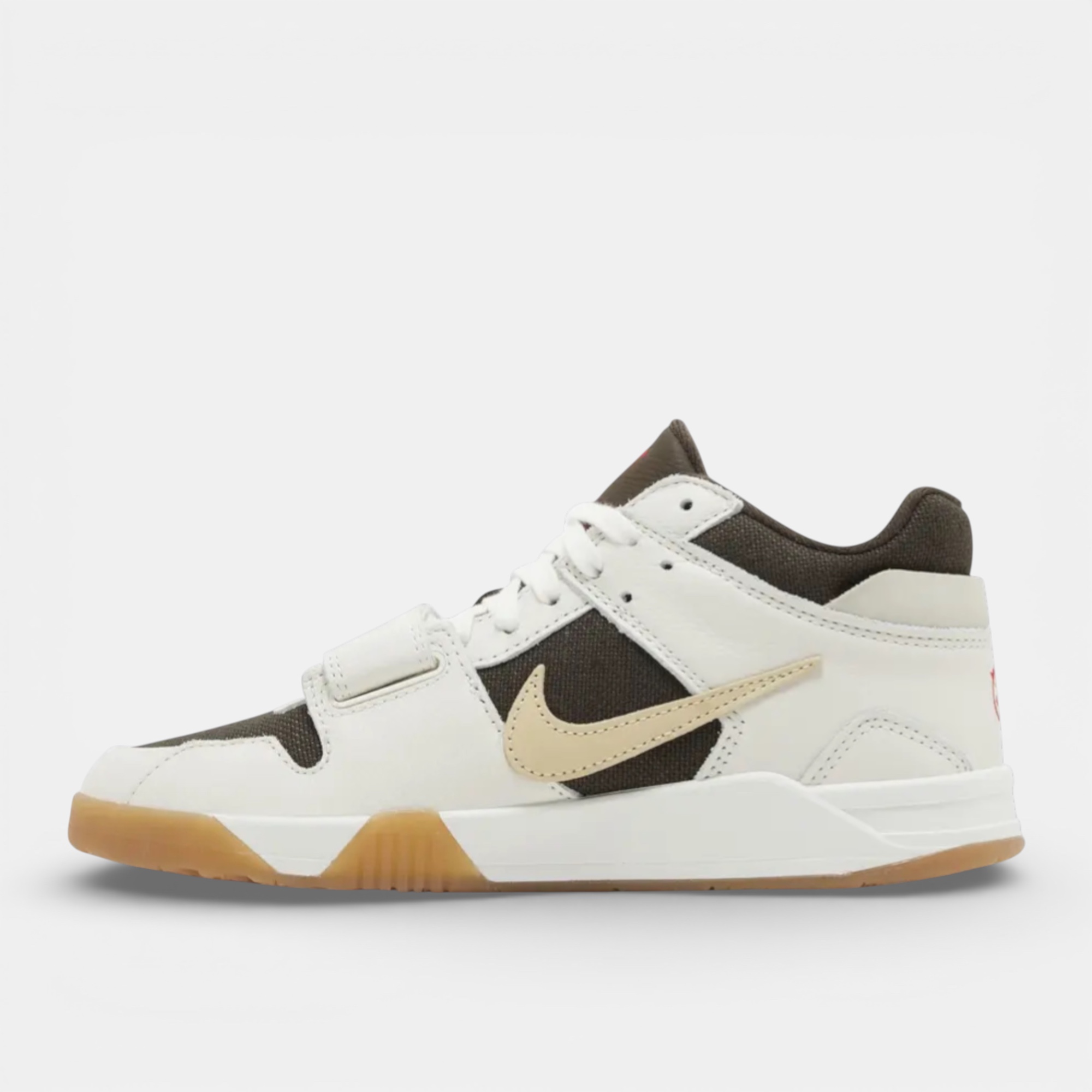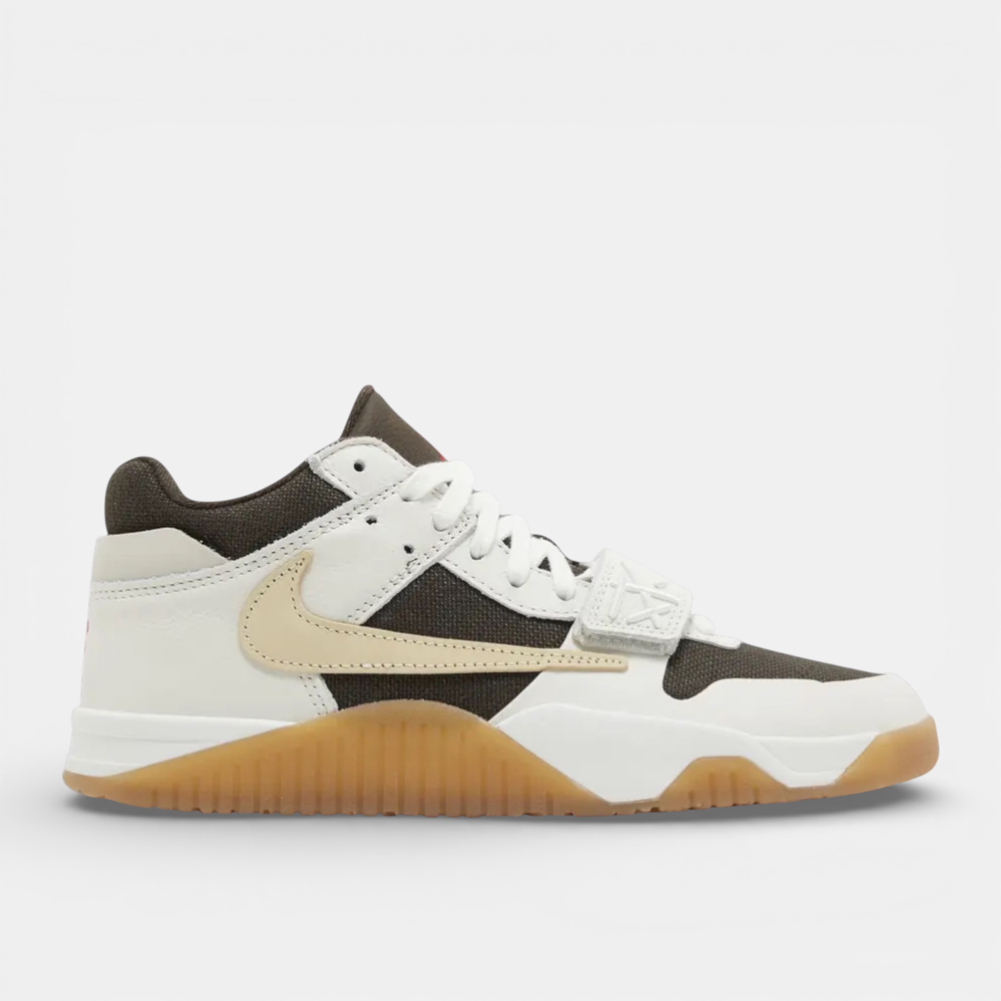 Des touches de rouge viennent ponctuer le design, notamment sur le logo Jumpman et le visage Cactus Jack visibles sur la languette et le talon. La Jordan Jumpman Jack TR Travis Scott Sail se distingue par son esthétique fonctionnelle et son positionnement à part dans l’univers des collaborations Jordan.