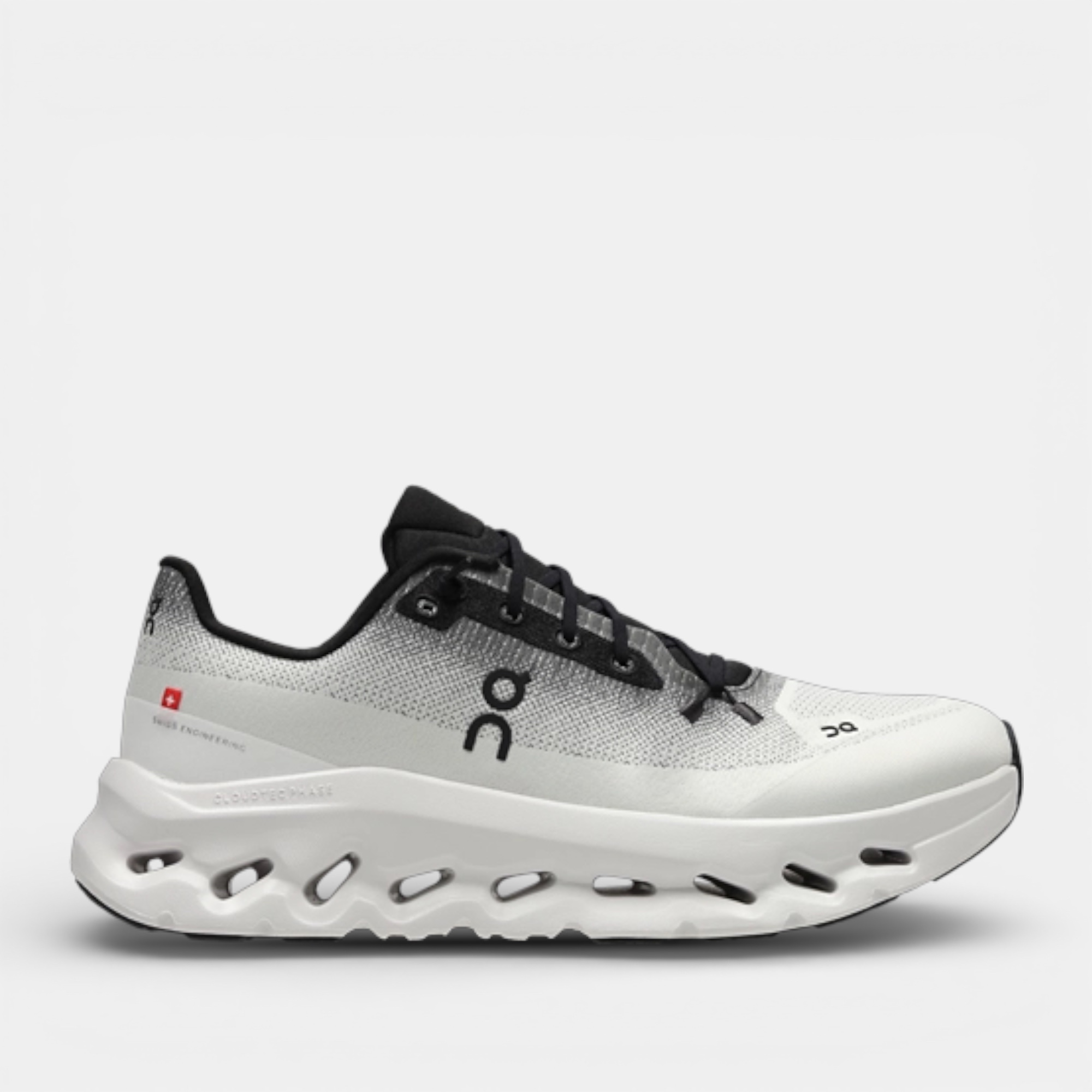 La On Running Cloudtilt Black Ivory est une chaussure pensée pour offrir un maximum de confort au quotidien, avec une conception axée sur l’amorti et la fluidité des mouvements. Elle associe une tige en polyester recyclé à un design dégradé noir vers ivoire, où les points noirs s’estompent progressivement vers la base pour un rendu visuel subtil. Le mesh adopte un motif différent au niveau de la toe box pour plus de structure, tandis que plusieurs logos On viennent signer le modèle sur les côtés, le talon et la languette. À l’arrière, un patch drapeau suisse accompagné de la mention « Swiss Engineering » rappelle l’origine de la marque. L’ensemble repose sur une semelle intermédiaire légère intégrant la mousse Helion, conçue pour apporter un amorti souple et un bon retour d’énergie, complétée par un système de speed laces pratique au quotidien.