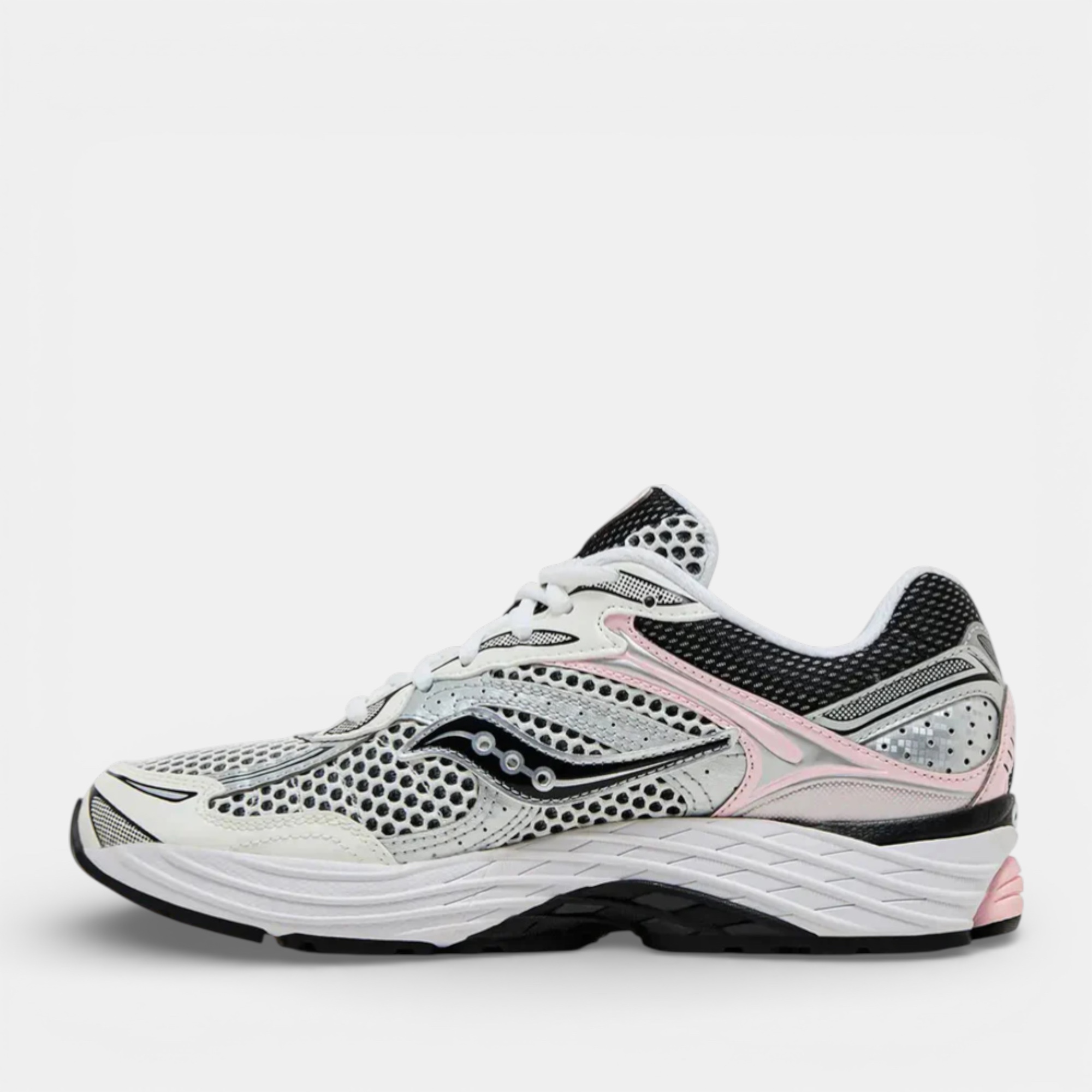 Appréciée pour sa polyvalence, cette version conserve une esthétique propre et structurée grâce au silver, tandis que les touches de rose ajoutent de la chaleur et une vraie personnalité sans en faire trop. Elle illustre la manière dont Saucony réinterprète ses modèles running emblématiques pour un usage moderne, entre confort, nostalgie et identité visuelle affirmée.